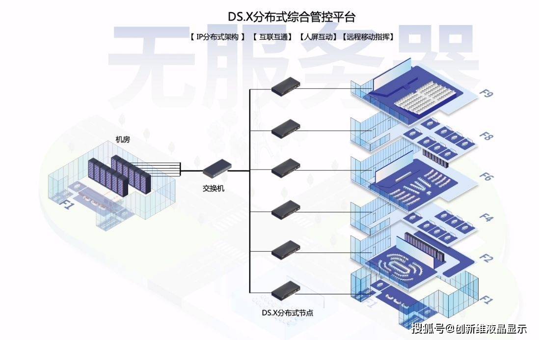 分布式显控系统是一种基于网络的视频处理技术,通过将视频信号分割和处理,将处理后的信号分发到不同的显示设备上。该系统由中央控制器、视频处理器、网络传输设备和显示设备等组成。中央控制器负责控制和管理整个系统,视频处理器负责对输入信号进行处理和分割,网络传输设备负责将处理后的信号传输到各个显示设备上。